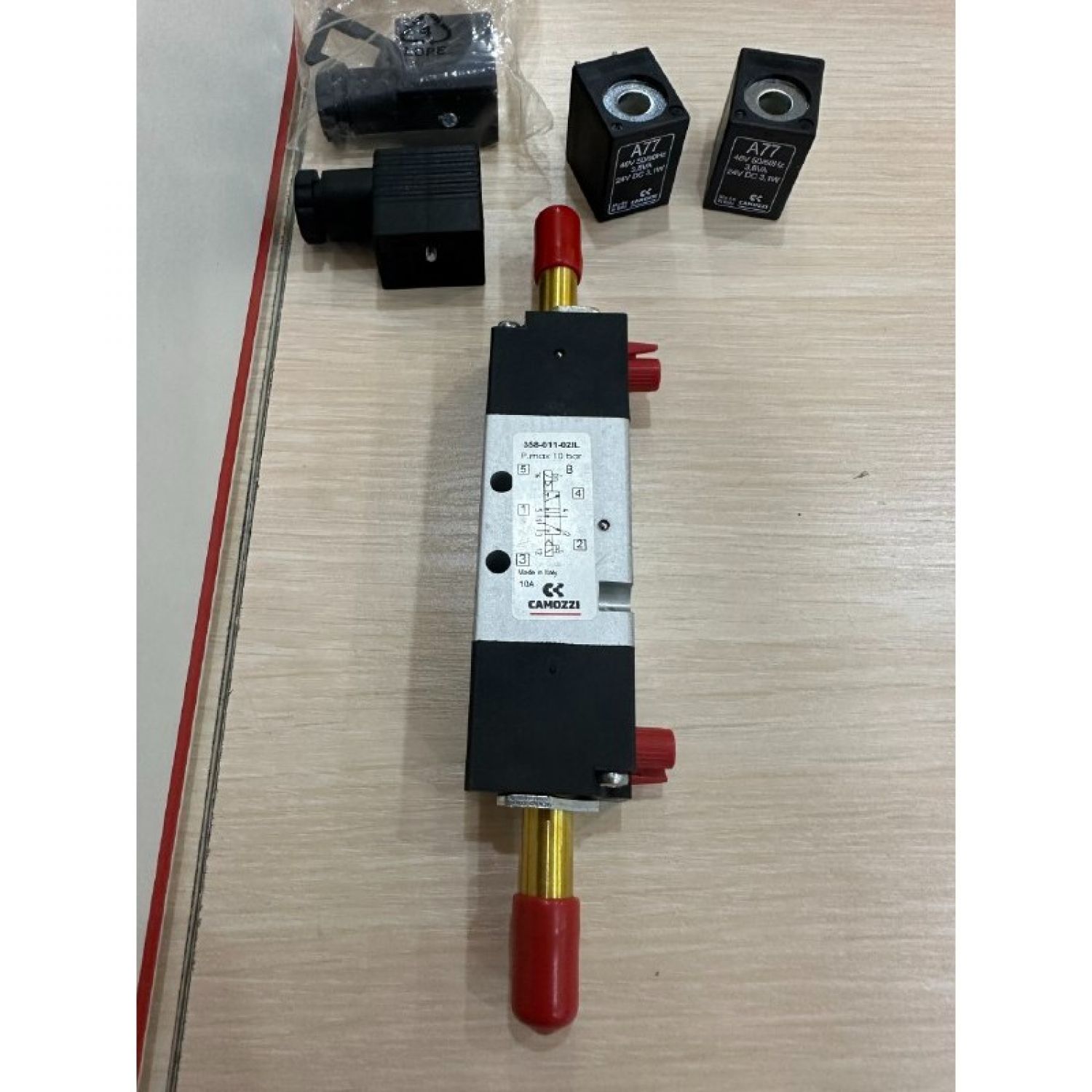 Camozzi 358-011-02IL — bu 5/2 yo‘nalishli, ikki holatli (bistabil) solenoiddan klapan bo‘lib, G1/8 ulanish o‘lchamiga ega. U pnevmatik tizimlarda havo oqimini boshqarish uchun ishlatiladi va asosan avtomatlashtirish, sanoat robototexnikasi va pnevmatik tizimlarda qo‘llaniladi.
