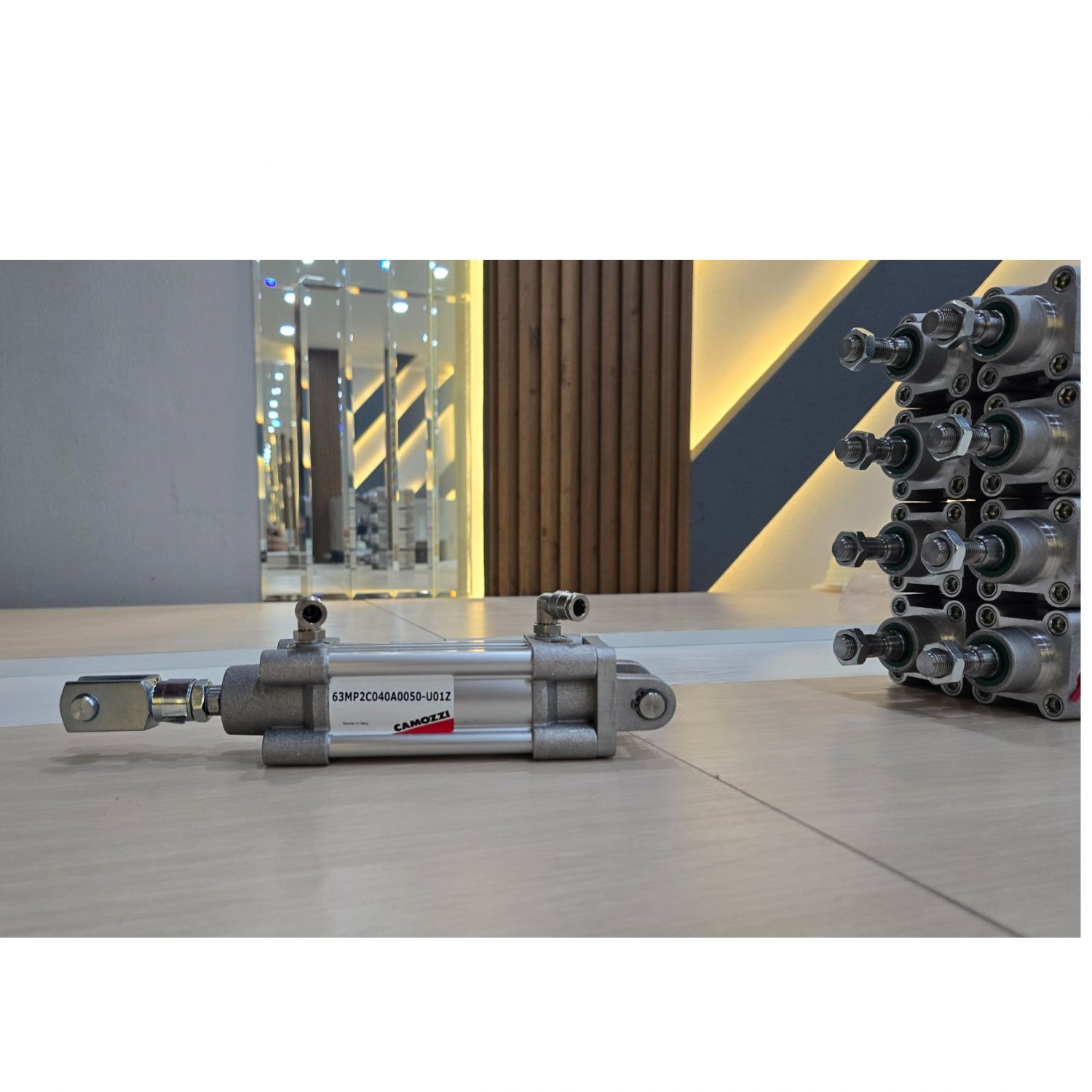 CAMOZZI 63MP2C040A0050 — bu 40 mm diametrli va 50 mm uzunlikka ega bo‘lgan ikki tomonlama ishlovchi pnevmatik silindr, ISO 15552 standartiga mos keladi. Magnitli piston, sozlanuvchi pnevmatik demperlash bilan jihozlangan bo‘lib, turli sanoat ilovalarida aniq chiziqli harakat talab qiladigan tizimlar uchun mo‘ljallangan.
