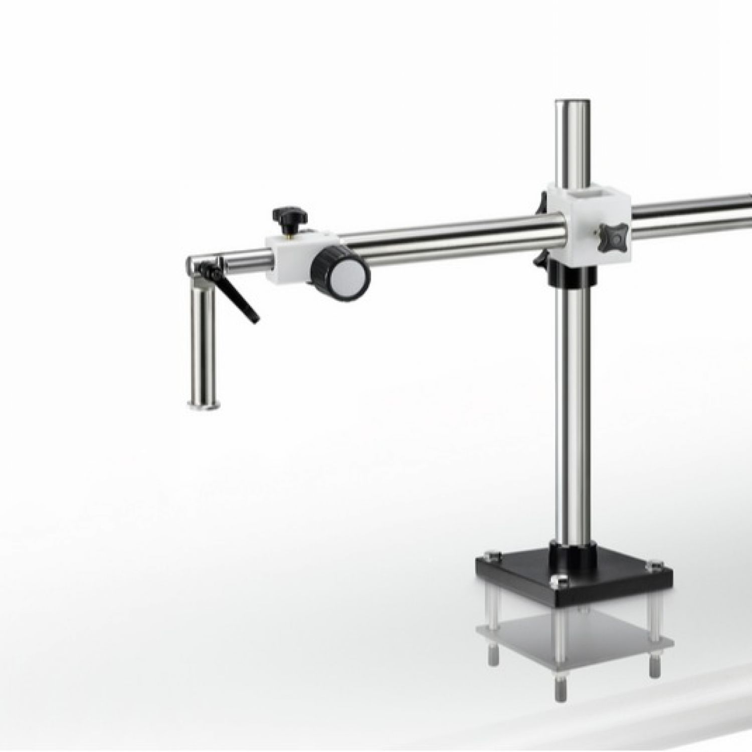 Большие универсальные штативы предлагаются с основанием или зажимом. В зависимости от модели доступны варианты с телескопическим рычагом, шарнирным рычагом или двойным телескопическим рычагом на подшипниках.