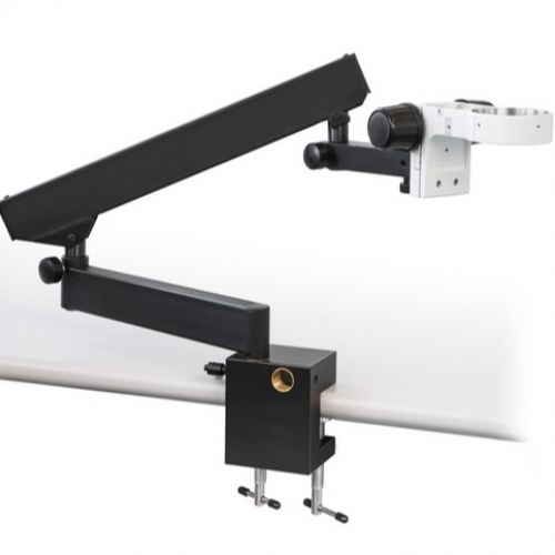Модель OZB-A6303 — это компактный универсальный штатив, оснащённый пружинным рычагом, зажимом, держателем и ручкой грубой фокусировки, что делает его отличным решением для удобной и гибкой повседневной работы с микроскопом.